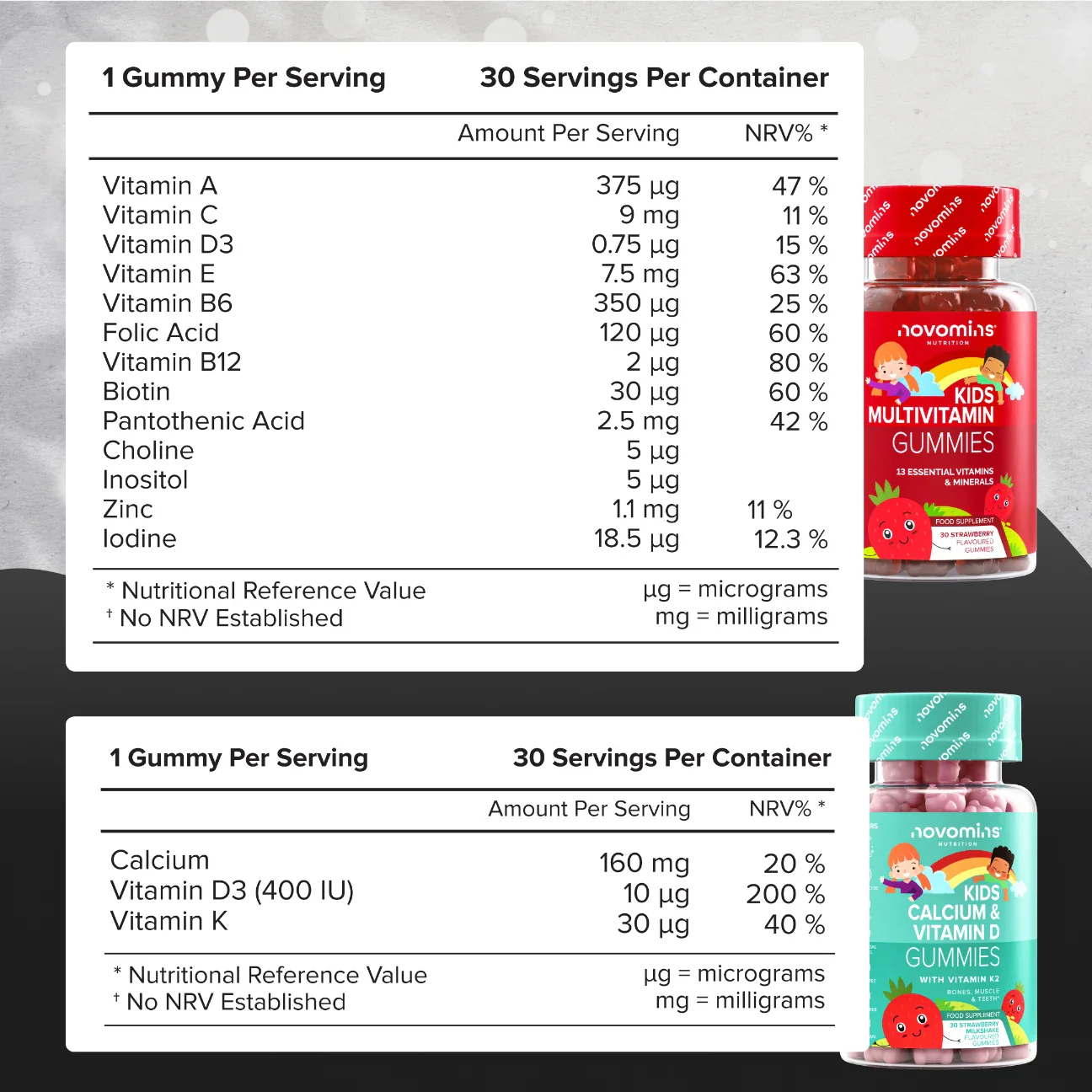 The Growth & Development Bundle combines four gummy essentials; Kids Calcium, Vitamin D & K2, Multivitamin, Omega 3-6-9, and Iron Gummies, to support growing bones, development, and daily energy. Formulated to keep up with every leap, run, and learning moment.